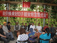 2018-05-31扶贫先扶志—古力巴格社区组织贫困户观摩5月29日,若羌县铁干里克镇古力巴格社区组织辖区贫困户23人到富裕家庭阿不力孜·玉素甫家进行集中实地观摩,开阔贫困户眼界,进一步解放贫困户的思想,增强脱贫致富的信心。 图为 扶贫先扶志-致富经验介绍 近年来,阿不力孜·玉素甫在党的富民政策指引下,积极发展多种经营,日子过得红红火火。大家参观了阿不力孜·玉素甫家农家乐、特色家禽养殖、百果园、拱棚蔬菜…[详细]