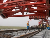 2018-05-21新疆跨度最长的铁路桥-格库铁路台特玛湖特大桥开始铺轨? 5月19日,记者从格库铁路台特玛湖特大桥铺轨现场了解到,新疆跨度最长的铁路桥-格库铁路台特玛湖特大桥自铺轨以来,目前已完成架设铺轨133孔。 记者在铺轨现场看到,大型铺轨机械在有条不紊地工作着,T梁被倒装龙门架运送到桥墩上,并把轨排铺设在T梁上,工人们正按照操作规范架梁铺轨。 现场铺轨一号车车长朱海鹏告诉记者,工人们顶着风沙和烈日正加班加点作业…[详细]