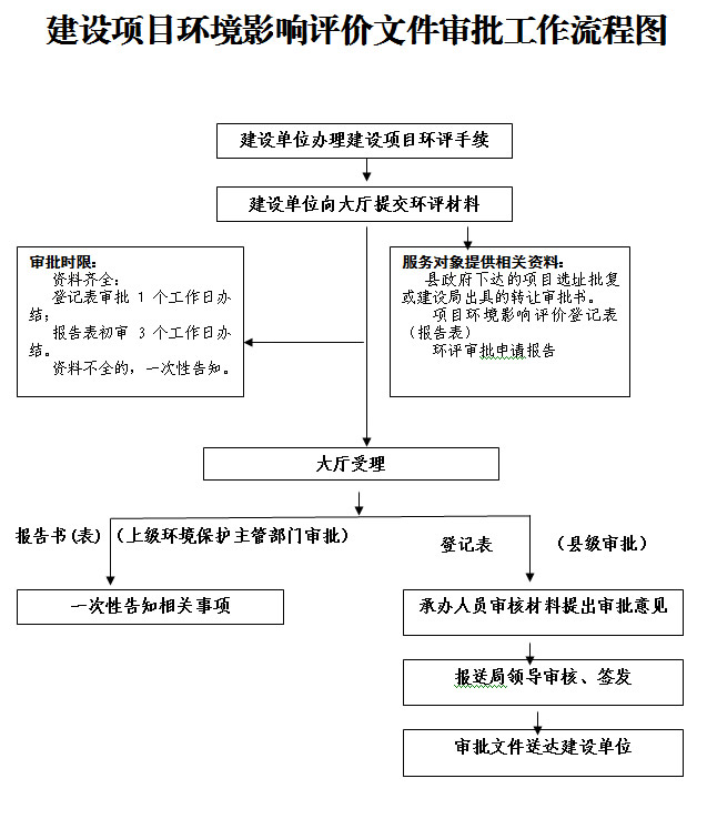 | 1 | 权限内建设项目环境影响评价文件的审批 | 《中华人民共和国环境影响评价法》、《建设项目环境保护管理条例》、《建设项目环境保护分类管理名录》 | 若羌县环保局综合业务室 | √ | 审批1日 初审2日 | |