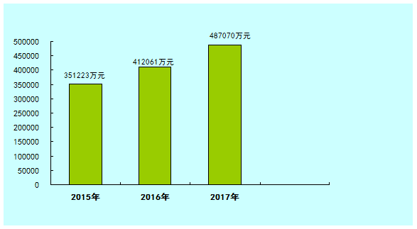 2017年,预计实现工业销售产值486227万元,其中:2000万元以上工业企业实现销售产值446004万元,500万元-2000万元工业企业实现销售产值24096万元,500万元以下工业企业实现销售产值7106万元,个体工业实现工业销售产值9021万元。