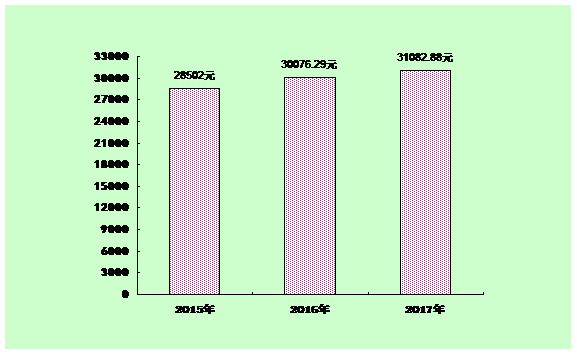 2017年,预计全县城镇居民可支配收入32797.72元,比上年增加1357.6元,增长4.3%。