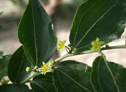 上图为若羌县吾塔木乡红枣园里的枣树正悄悄地绽放出枣花的芳香