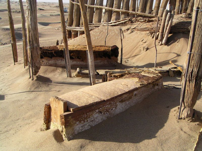 小河墓地位于罗布泊地区孔雀河下游河谷南约60公里的塔克拉玛干沙漠中,东距楼兰古城遗址175公里。小河墓地整体由数层上下叠压的墓葬及其它遗存构成,外观为在沙丘比较平缓的沙漠中突兀而起的一个椭圆形沙山。墓地沙山高出地表7.75米,面积2500平方米。小河墓地有墓葬约330个,其中被盗扰的约160个,是世界上出土干尸最多的墓葬。小河墓地,被评为2004年中国十大考古发现。