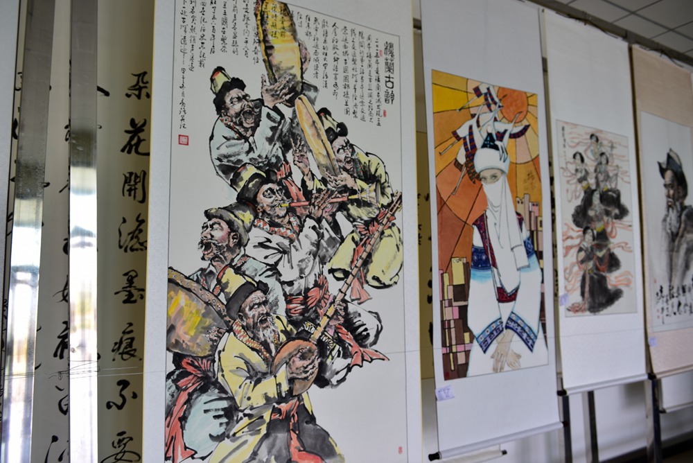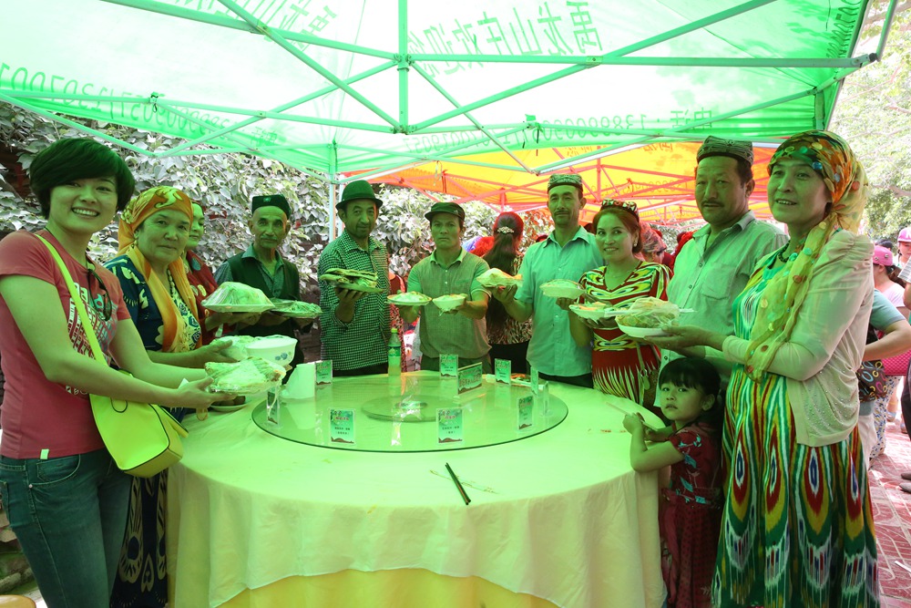 上图为大型文娱活动“若羌赛乃姆”开始前演员们合影