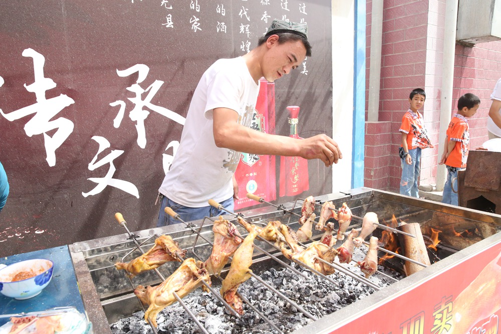 上图为“若羌赛乃姆”活动中 维吾尔大叔弹都塔尔