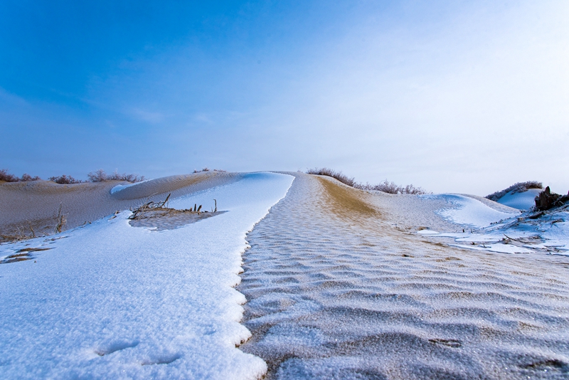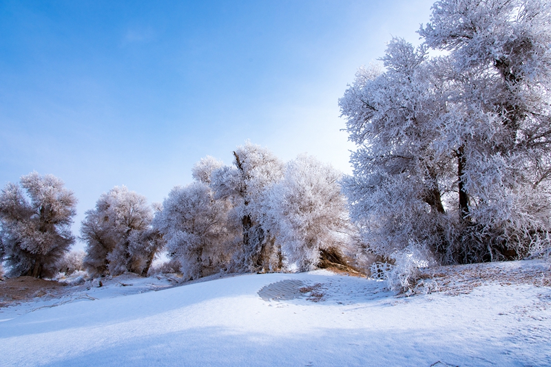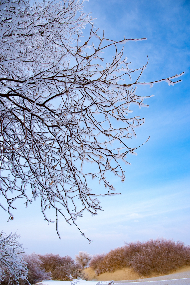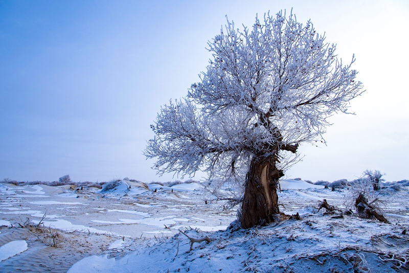 若羌沙漠胡杨雪景