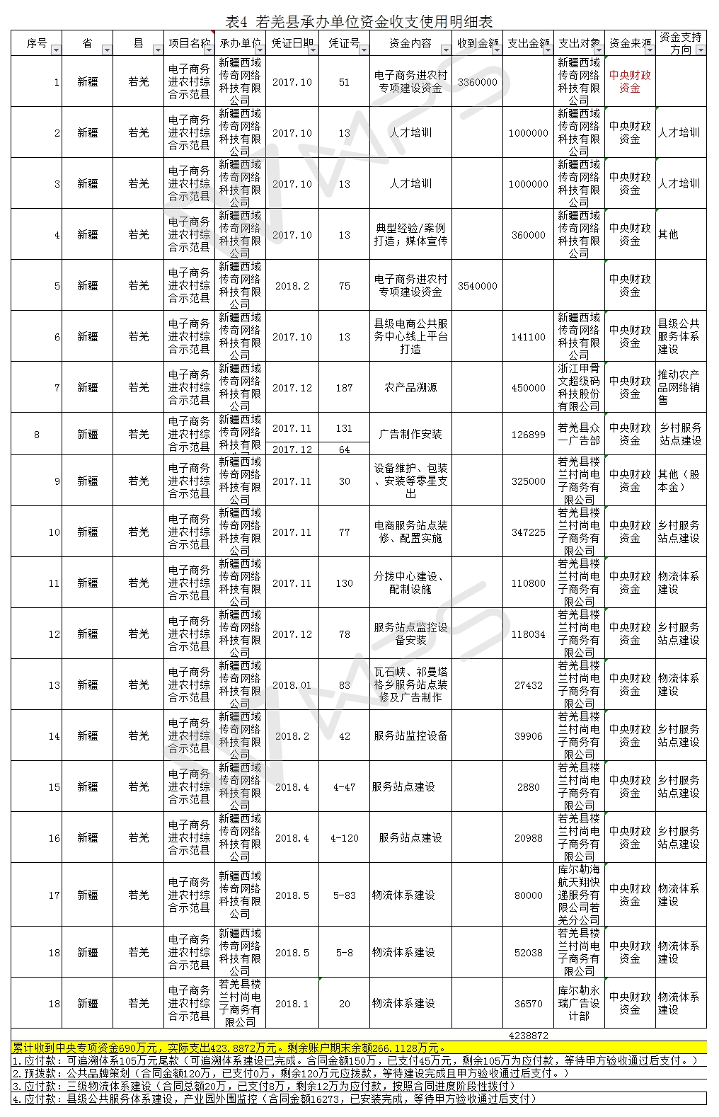 若羌县专项资金使用明细
