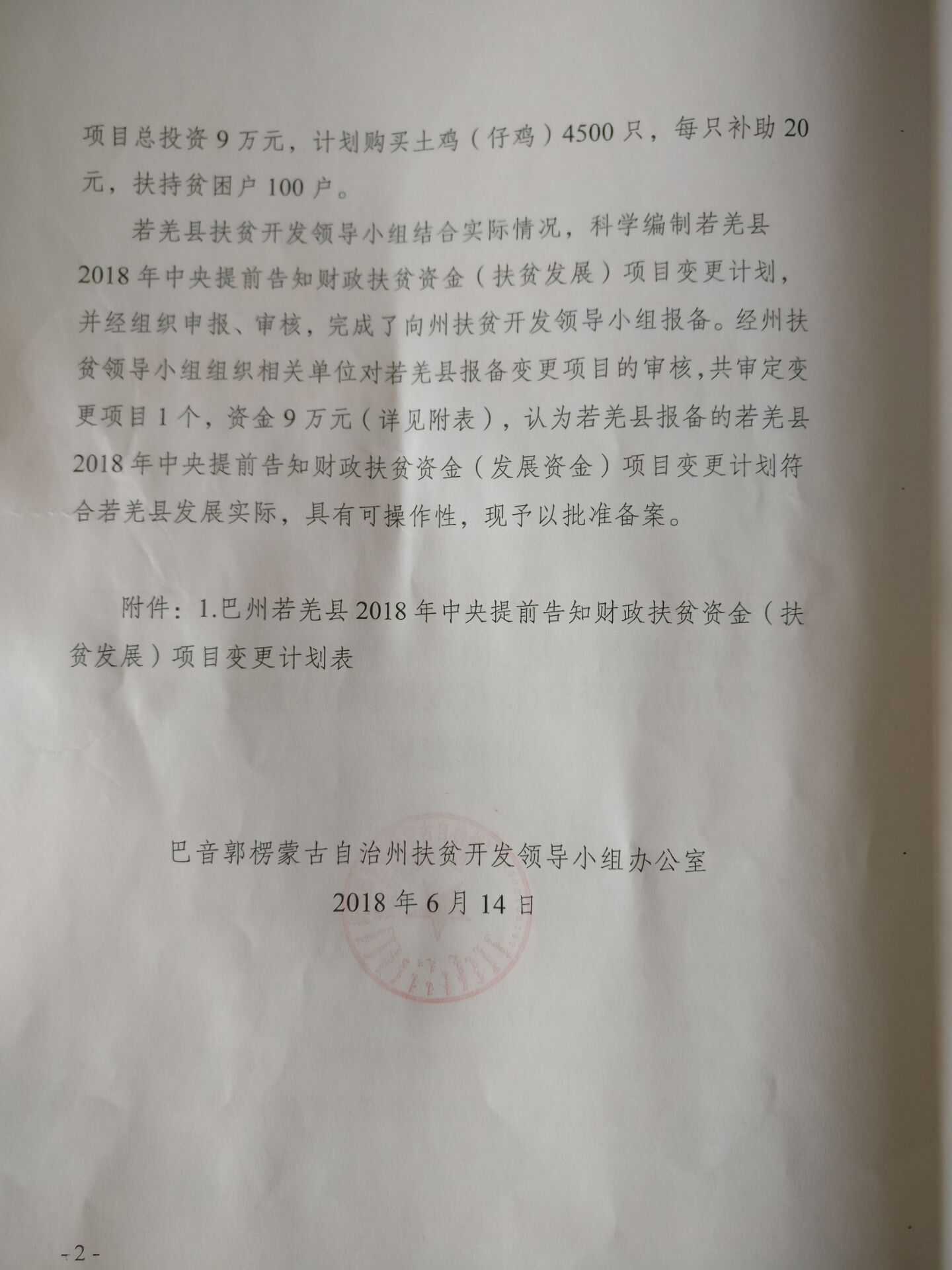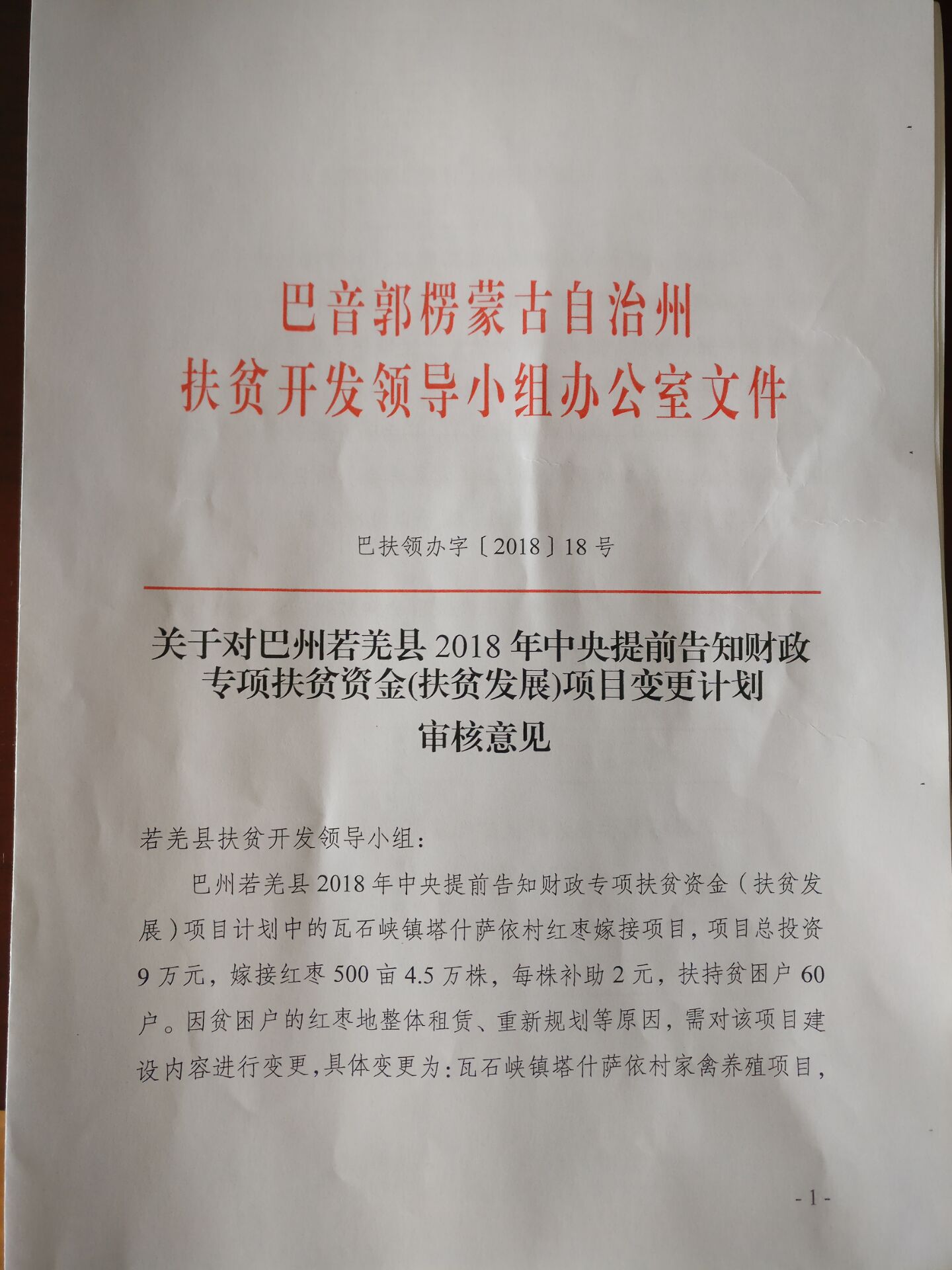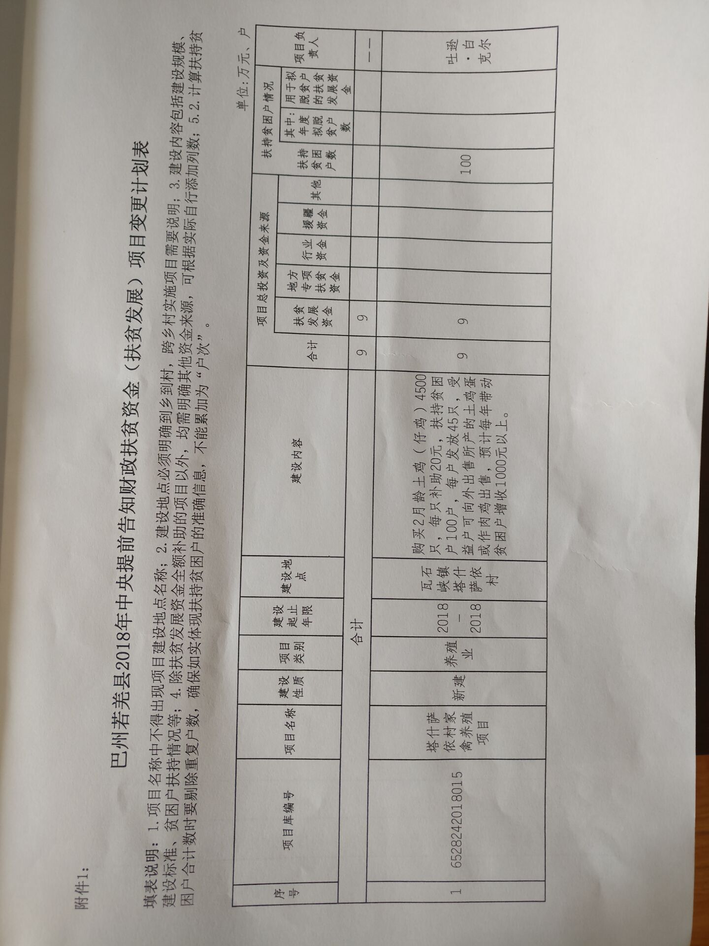 1.若羌县2018年度中央提前告知财政专项扶贫资金(扶贫发展)项目变更计划汇总表