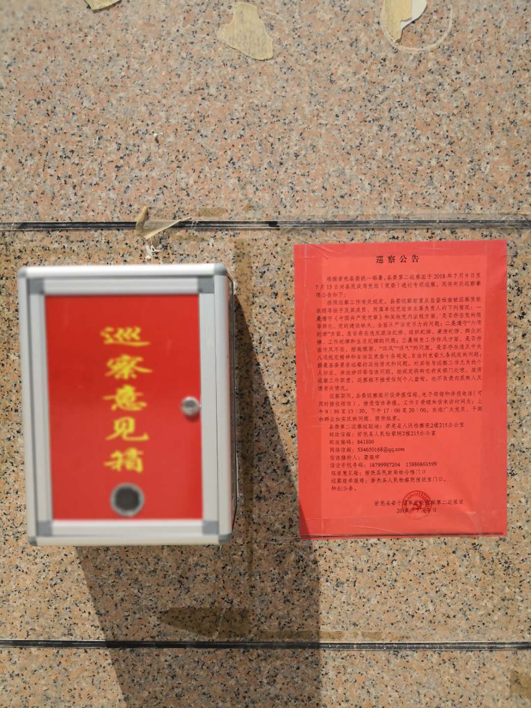 图为 第二巡察组在民政局门口设立意见箱方便群众反映问题