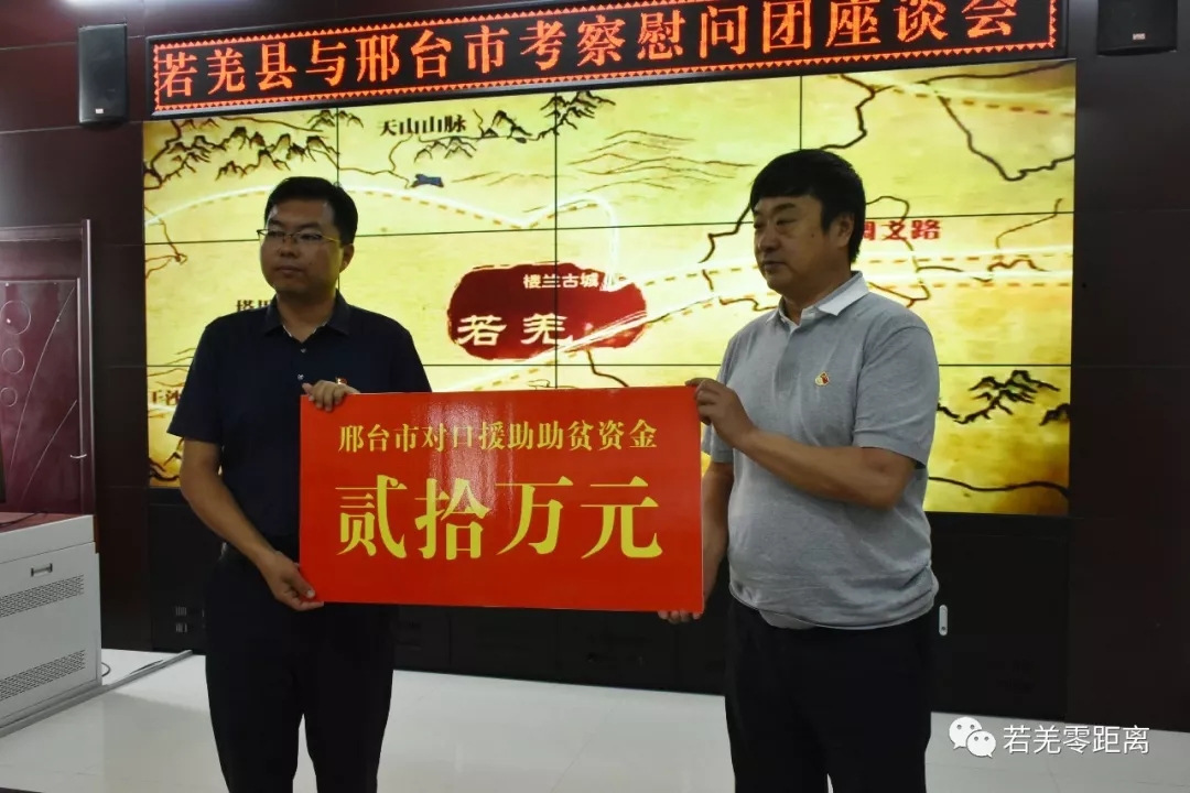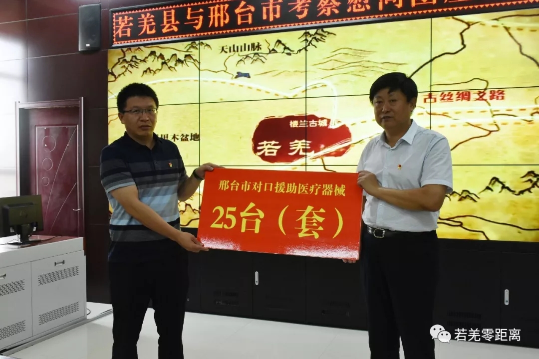 座谈会上,邢台市还向若羌县捐赠了对口援助医疗器械25台(套)和对口援助助贫资金20万元,用于若羌医疗事业发展和精准脱贫工作。